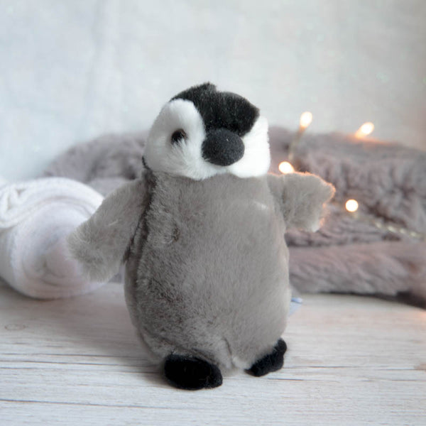 This adorable mini penguin soft toy has super silky soft fur with long and soft flippers, detailed eyes and a lil fabric beak, perfect for nuzzling. A little black tail and a bottom half that is lightly weighted with beans makes sure that this cuddly penguin can sit nicely without toppling over.