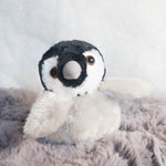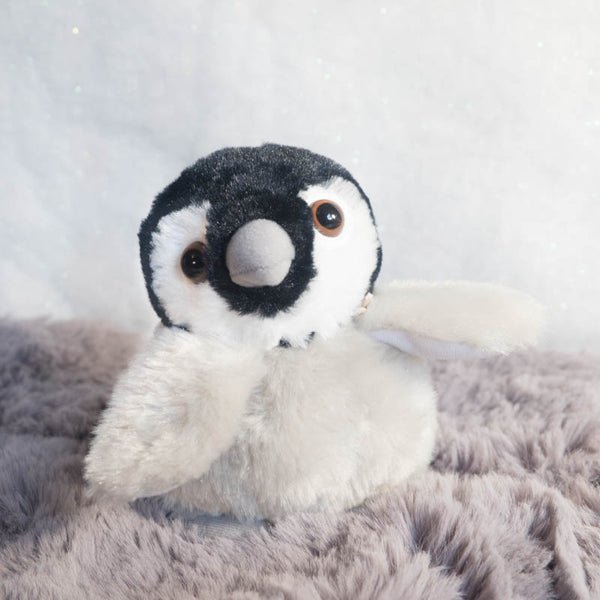 This adorable cuddly plush penguin has beans inside so this one can sit up steady, ready for fun adventures. This emperor chick plush has fluffy long piled grey fabric body which is so fantastically soft, you'd be hard pushed to put this little penguin teddy down!