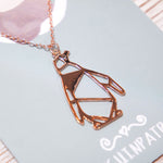 This beautiful penguin necklace features an origami style penguin, with strong geometric lines. This penguin pendant comes in silver, gold and rose gold colour options. This penguin necklace is perfect for any penguin lover who wants to keep their feathered close to their hearts at all times!