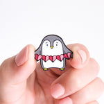 Add some penguin love to your lapel with this adorable penguin pin badge - little Penguin spent lots of time lovingly making a heart garland, and is holding it just for you!
