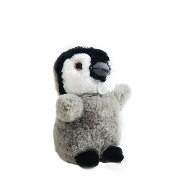 This sweet little penguin soft toy from the Hug 'Ems Mini collection will charm and delight any penguin lover with his super-soft fuzzy fabric body and sturdy feet. This adorable penguin chick has a soft and fuzzy grey body with a white face with black markings and a grey little beak that is solid and great for nuzzling.
