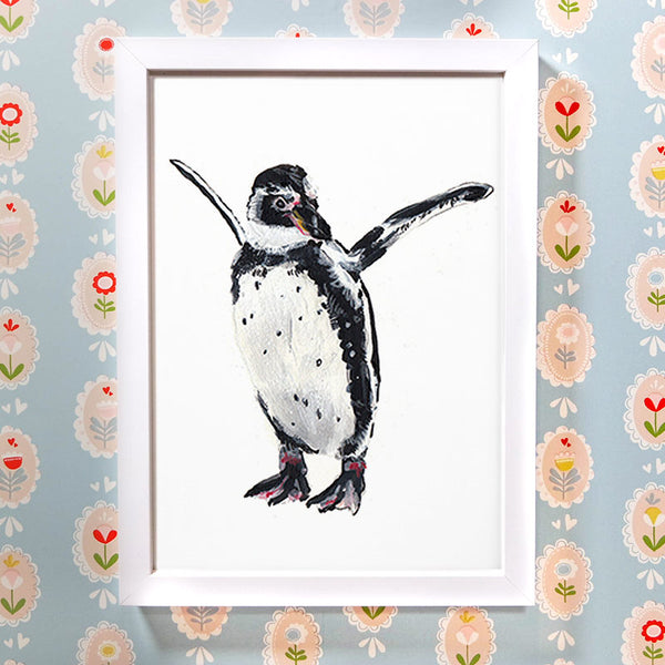 This fabulous Humboldt penguin print will take pride of place on your wall. This penguin art print is available in A4 and A5 sizes and is ready to be framed straight away.
