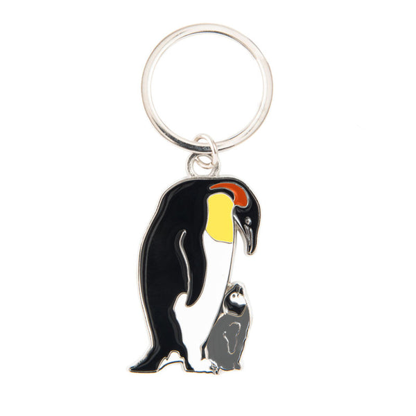 Made from metal with coloured enamel fill, this cute penguin keyring features a lovely emperor penguin, complete with its unique colouring, looking after their little chick.