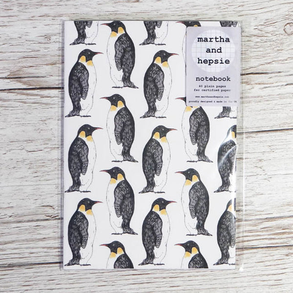 This adorable notebook features the Party Penguin print designed by the wonderful Martha & Hepsie in Sheffield! The stylish Party Penguin Notebook features a lovely monochrome penguin illustration, with a highlight of yellow colouring on their chest.