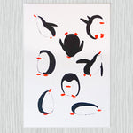 This beautiful A4 penguin art print features an adorable penguin in a range of poses - from ready to take a swim to waddling away.