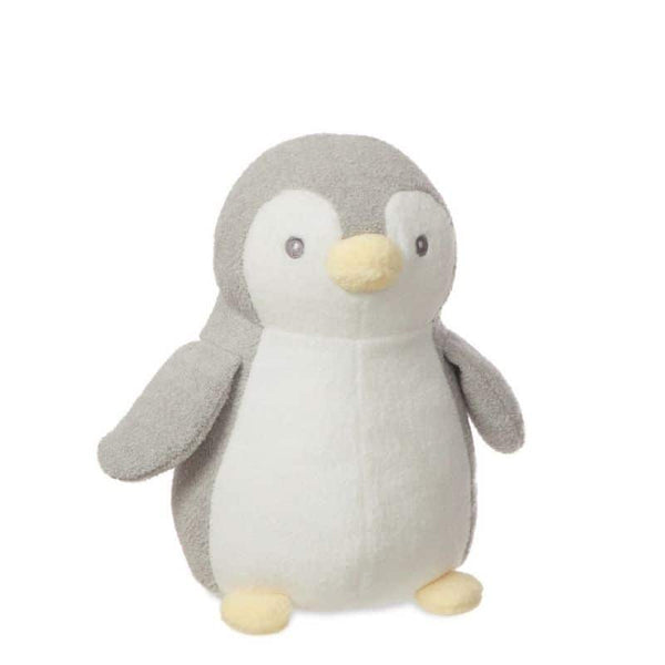This plush penguin measures 23cm tall and has a grey body, a while belly and lemon coloured feet and beak, perfect for snuggling against when it's cuddle time. This delightful soft toy is produced to the highest standard, using the finest, baby-friendly plush materials.
