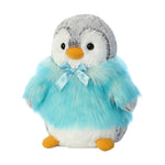 This gorgeous Pom Pom penguin from Aurora is all wrapped up for winter with a gorgeous teal blue coloured coat along with a cute ribbon bow. With long super soft fur, this penguin soft toy will be cuddled and treasured for years to come.
