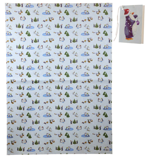 Find penguins skiing, fishing, having a skate and adding some baubles to a tree on this penguin gift wrap by Jan Pashley. Measuring 70cm x 100cm, this cute wrapping paper makes sure you can cover a large parcel with penguins - possibly with some paper to spare!